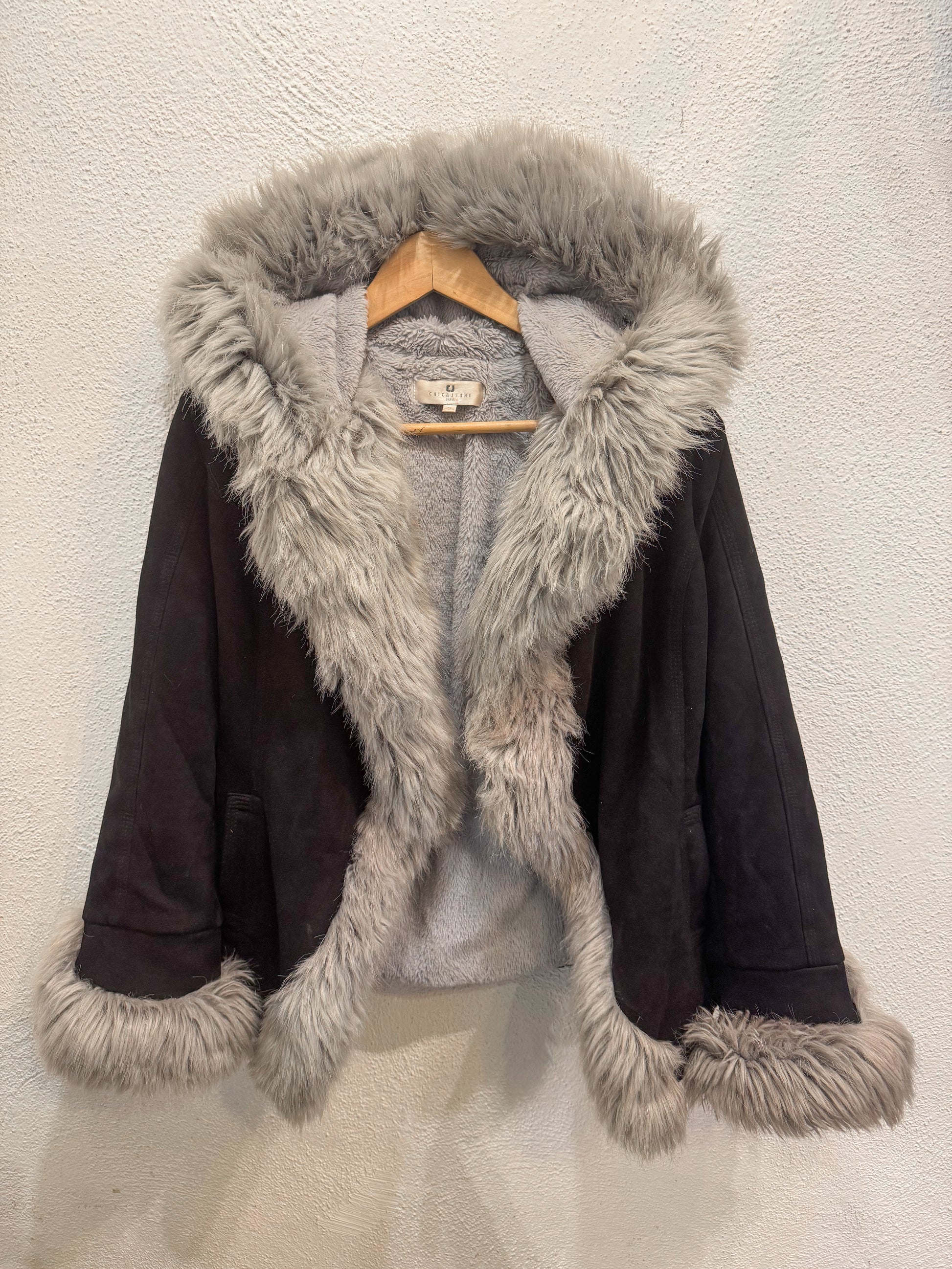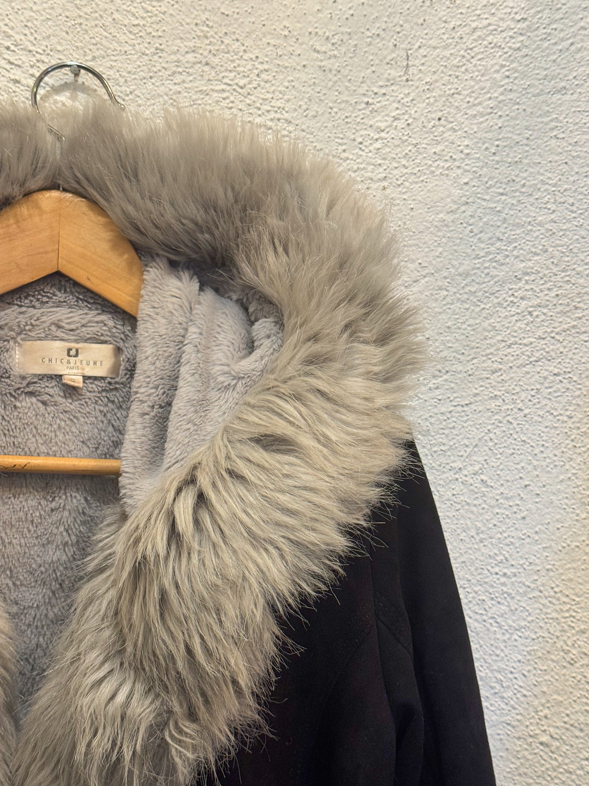 Giacca Y2K nera con pelliccia sintetica. Taglia S/M.