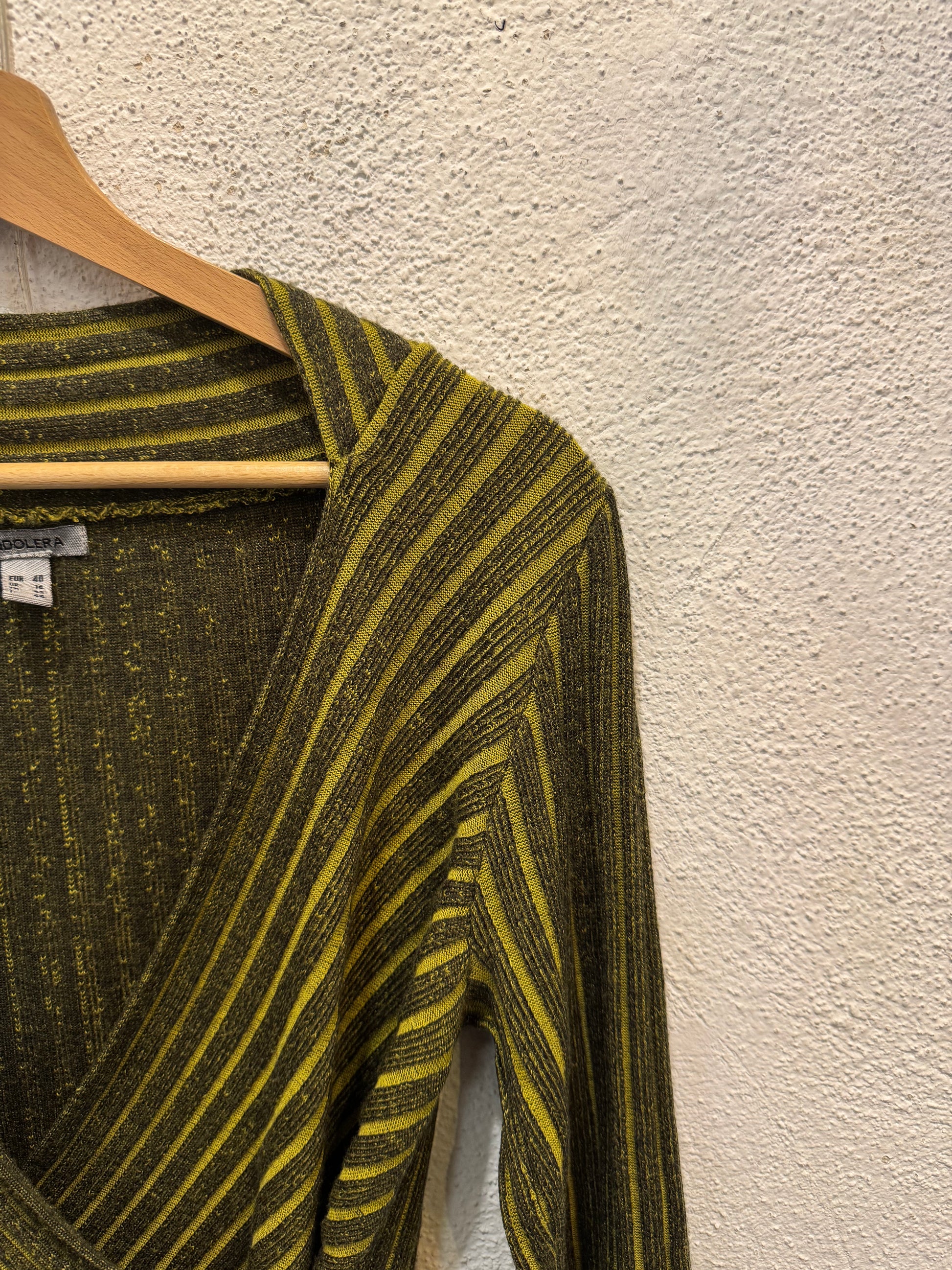 Pull Y2K asimmetrico nelle sfumature del verde. 30% lana. Taglia S/M.